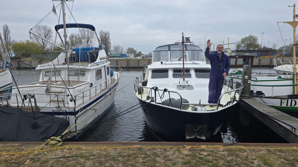 Rond half zes wordt er op de boot geklopt. Wij liggen op een plek, die ons door de havenmeester was toegezegd, van mensen die graag hun boot op de eigen ligplaats willen omdat ze naar huis gaan.