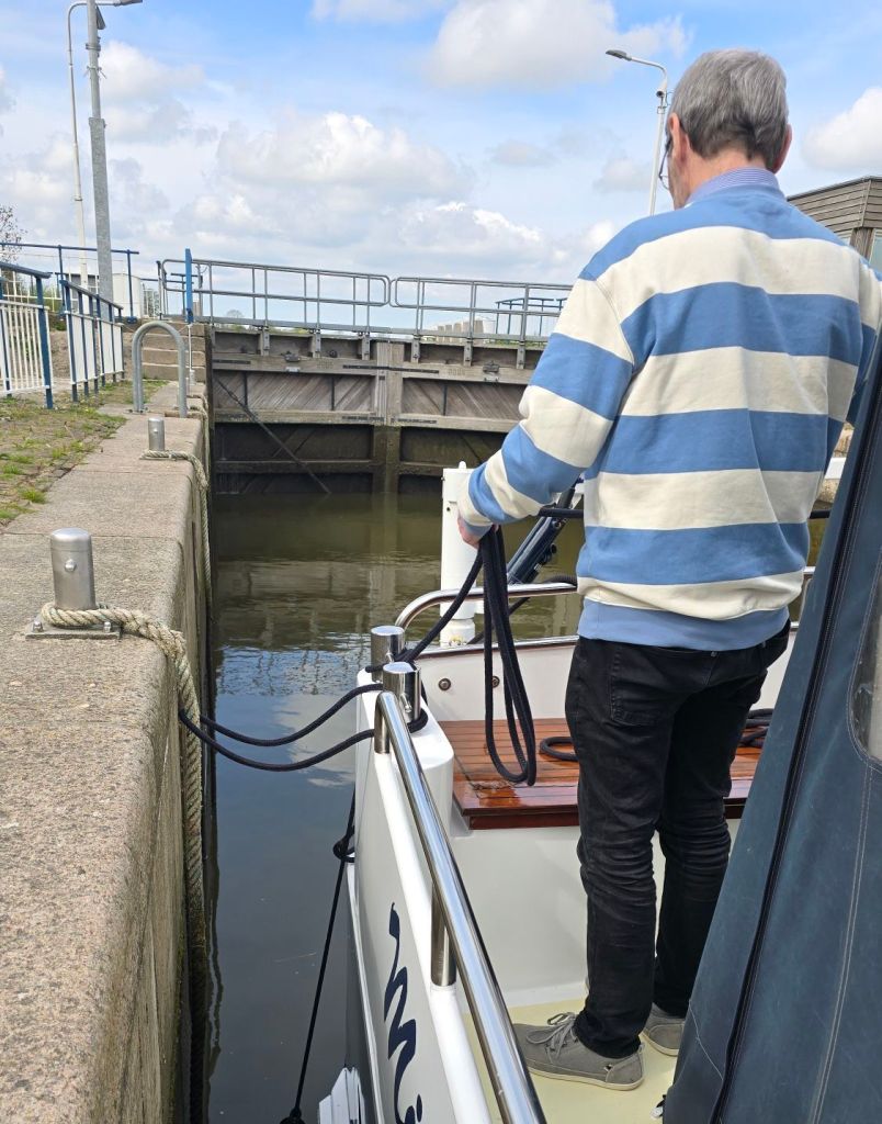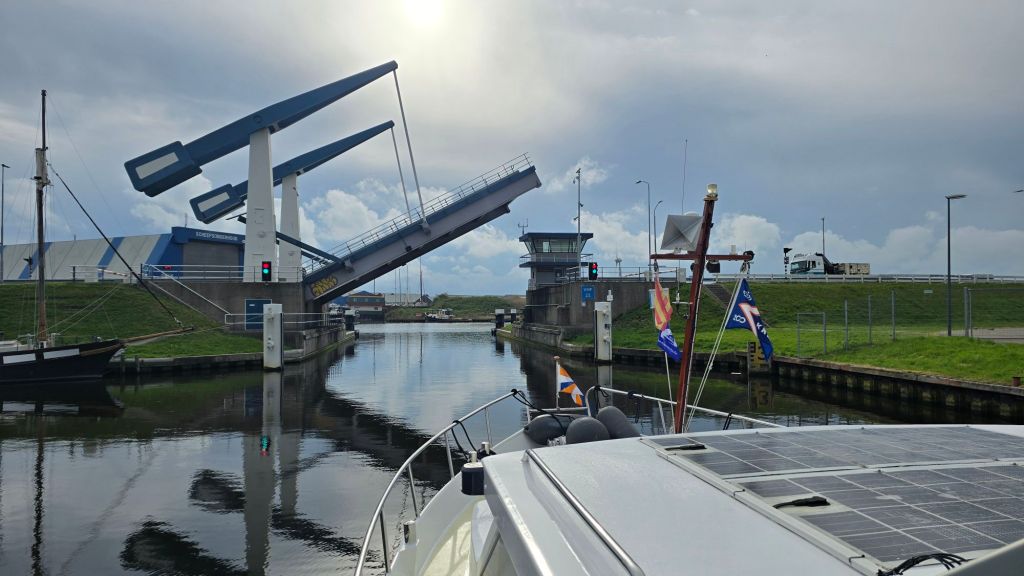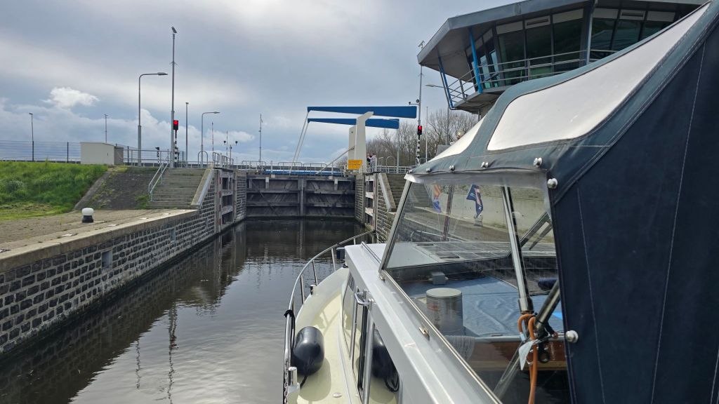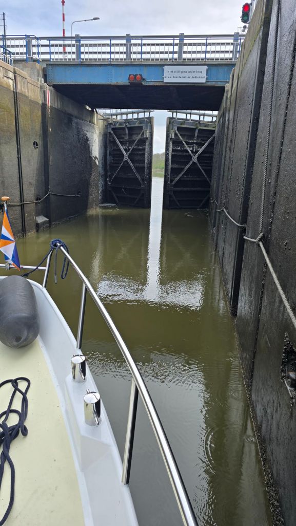We hebben 20 minuten in de sluis gelegen met 0 cm verschil in hoogte. Alles wordt nu centraal bediend in Noord-Holland. Of dat een verbetering is weet ik niet maar het duurt allemaal veel langer. Alle kunstwerken, zoals de bruggen en sluizen genoemd worden, moeten het hele programma van open en sluiten helemaal afmaken. Natuurlijk heeft dit ook met veiligheid te maken. De bedienaar moet alles vanaf de monitoren bekijken. Helaas mag deze er dan ook maar twee tegelijk bedienen. Dat wordt nog wat als het echt druk gaat worden. 🙄