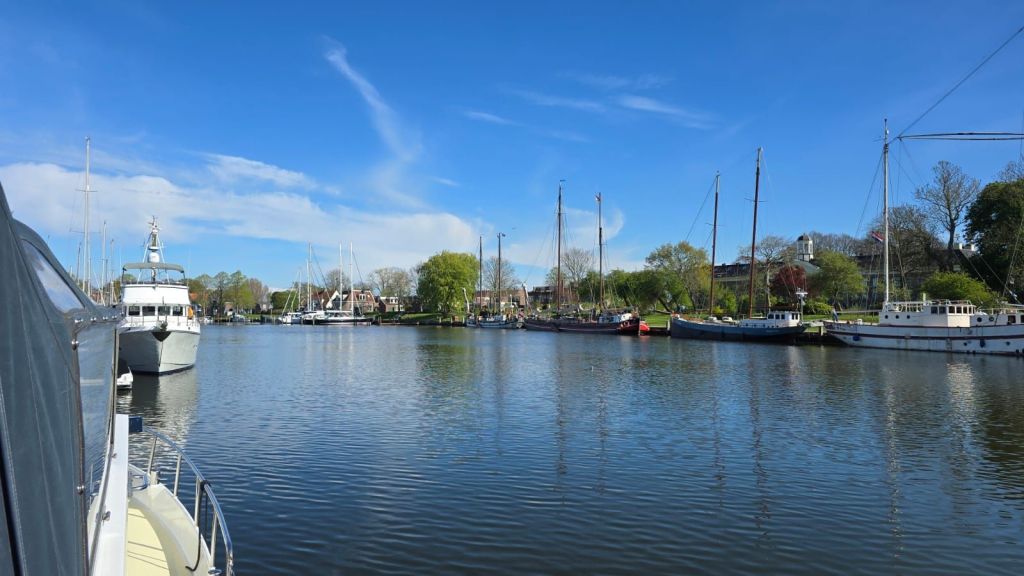 Na nog een laatste sluis meren we af in Medemblik, heerlijk, neusje in de wind en zon op het achterdek. Genieten.