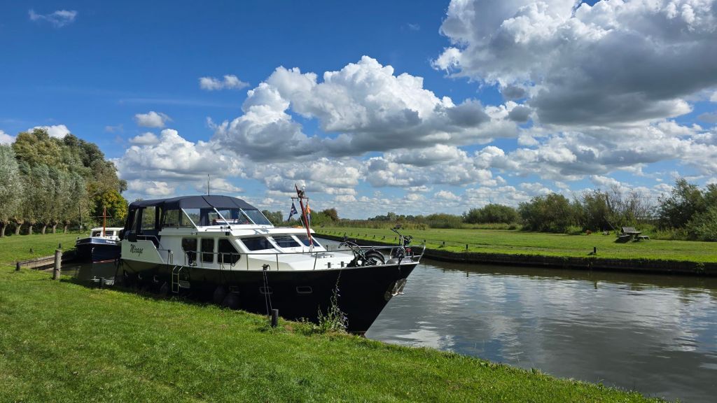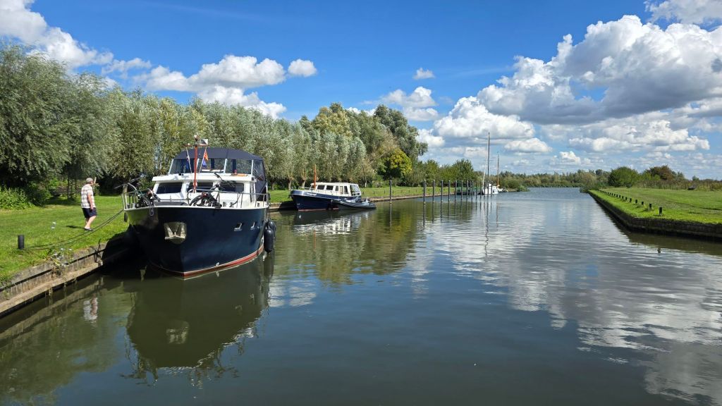 Weer een plekje wat we nog nooit bezocht hadden. Wel jaren geleden op een ander steiger elders gelegen, maar dat vonden we niets. Te open, onbeschut en slechte wallenkant. Dit was een tip van een andere schipper.