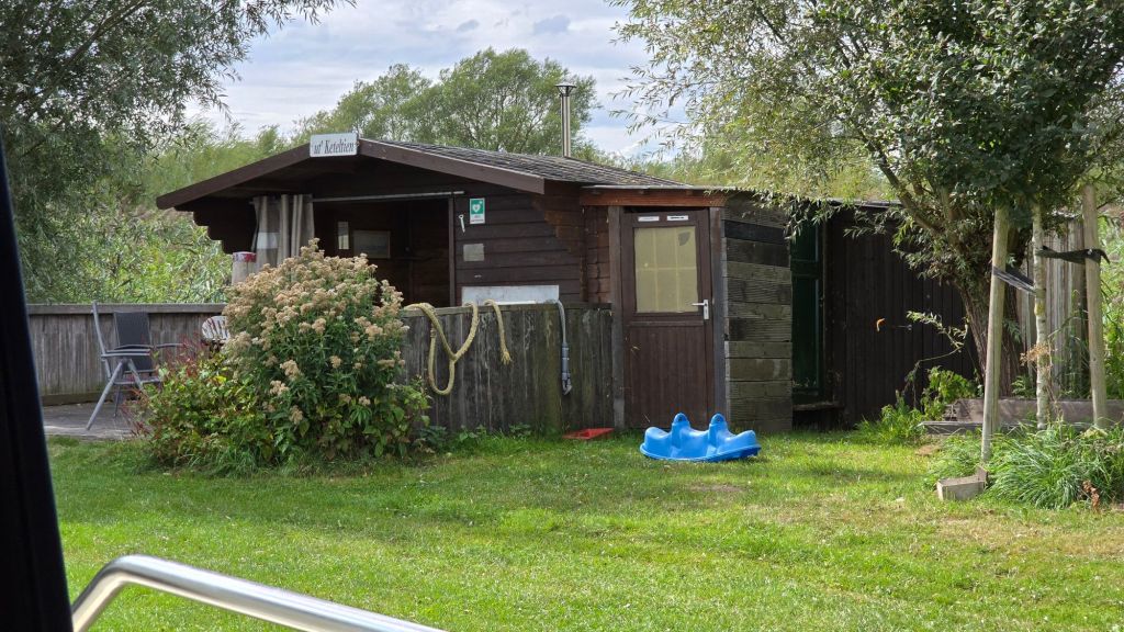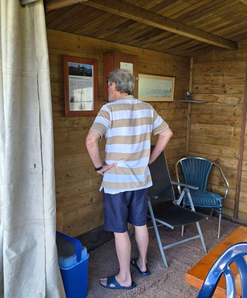 Het weer is nog steeds gunstig. We liggen vlak bij “Ut Ketelstien”. Een open blokhut waar zelfs een AED in hangt.