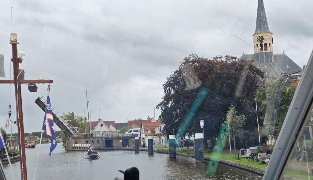 Het weer is volslagen omgekeerd. Bewolkt en regen, lange broek en vest aan. Eerst nog een bakkie aan boord van de Toto bij Gilia en Edwin. De regen komt met bakken uit de lucht, dus nog maar een bakkie. Het is tegen 12 uur voordat we vertrekken.