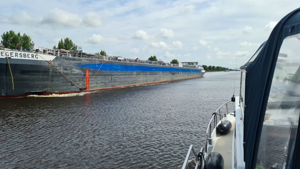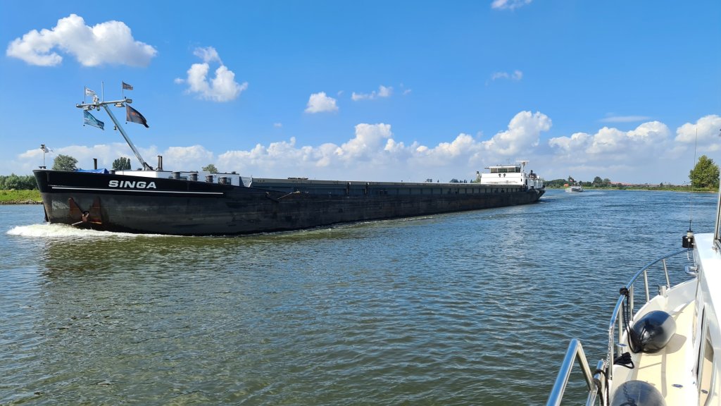 Het heeft werkelijk geen zin om vrachtvaart in te halen. Buitenom dat het risico’s met zich meebrengt, veel schippers niets op hebben met jachtjes duurt het door de zuiging ook heel lang voor je er voorbij bent. En nog vervelender is het als je dan voor de sluis ligt en de sluismeester rustig wacht tot het vrachtschip er is en je weer achteraan mag aansluiten.