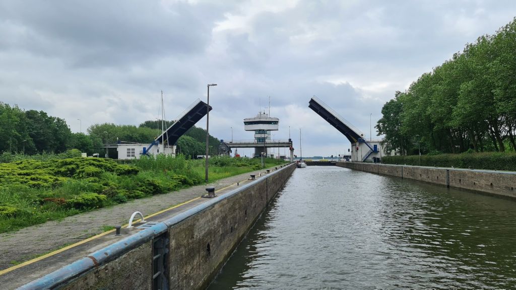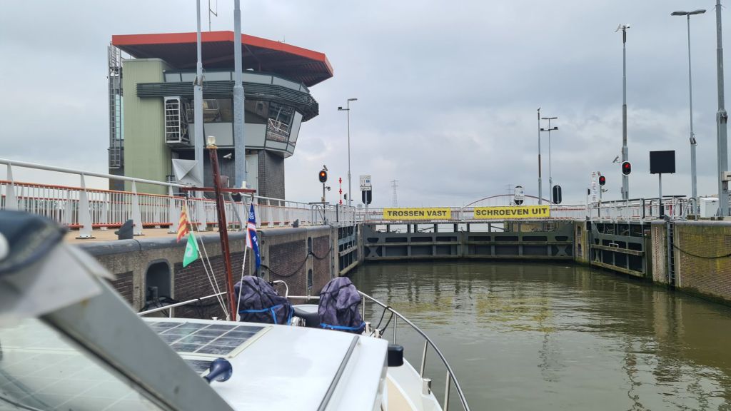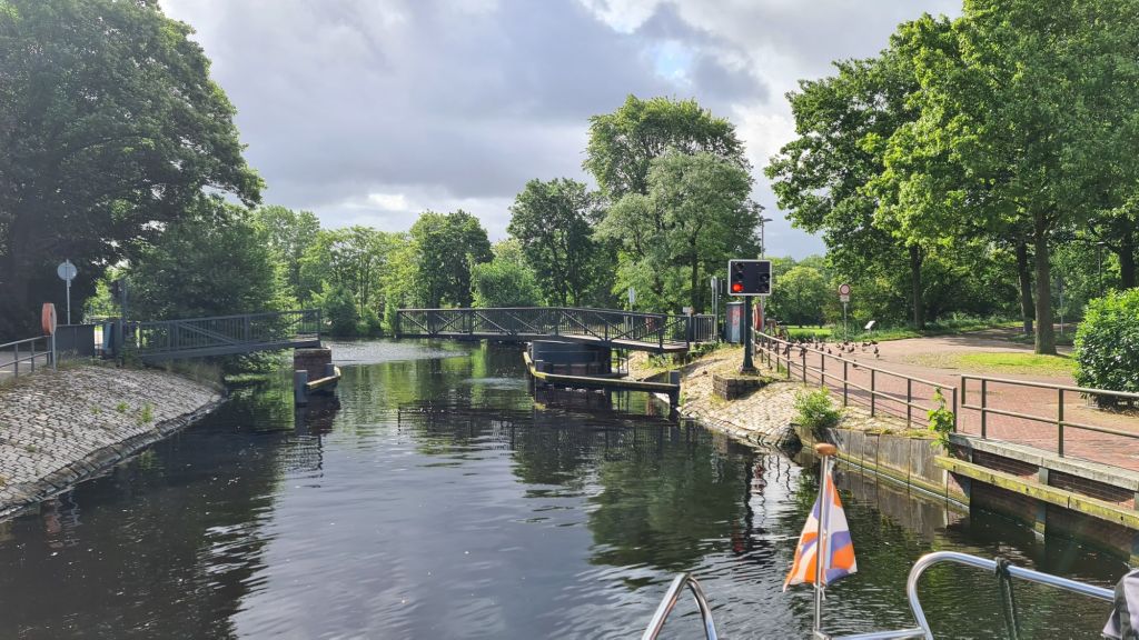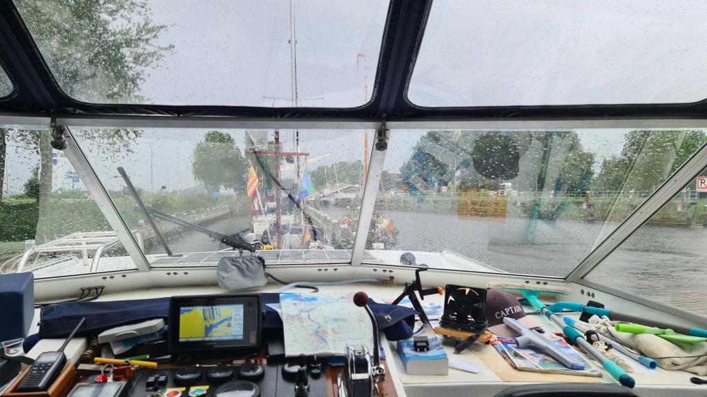 Morgen gaan we weer verder, tussen de buien door ziet het er iets droger uit. De brug gaat om 9 uur open en aangezien deze maar zelden draait mogen we weer vroeg ons bed uit.
