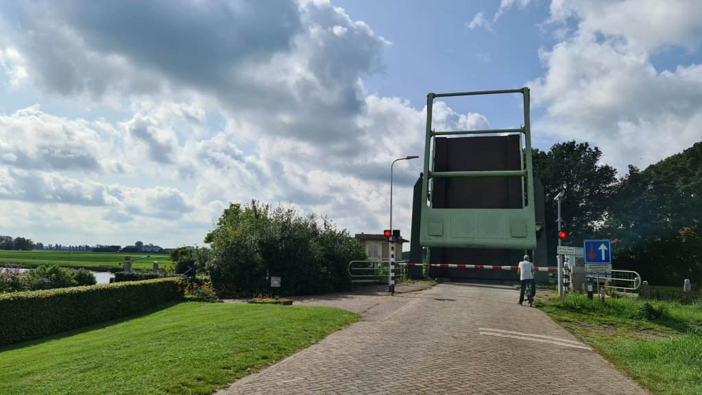 Als we hierboven voor de brug staan wachten is het nog ik denk 2 km fietsen. De lucht begint al te betrekken en in de verte zijn de donkere wolken zichtbaar. Aan boord nog genieten van het laatste zonnetje. Het is vandaag ook echt zondag zullen we maar denken. Als het straks regent vast wat werk op de laptop, opdrachtgevers beginnen ook al weer te trappelen. Langzaamaan maar aan het idee gaan wennen dat onze 6 weken vakantie er bijna op zitten. 😟