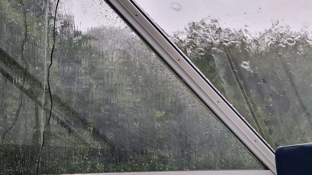 De rest van de avond regent het, soms zo hard dat je elkaar niet kan verstaan. Nog even wat online werkoverleg en daarna weer een rustige avond met de regen tikkend op de boot. Geef mij het zonnetje maar.