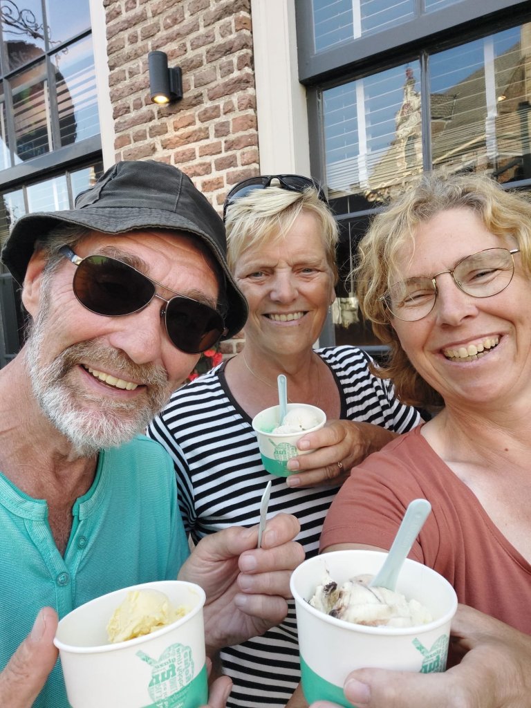Het eten was zalig, als we in Groningen zijn is dit wel een vaste stek en als vanouds weer gezellig. Als afsluiter was er koffie of thee. Maar Ans en ik wilde liever een ijsje en vroegen om de dessertkaart. Helaas dat was er niet meer. Toch kwam ze even later met deze twee ijsbekers, hoe vervelend.