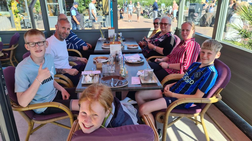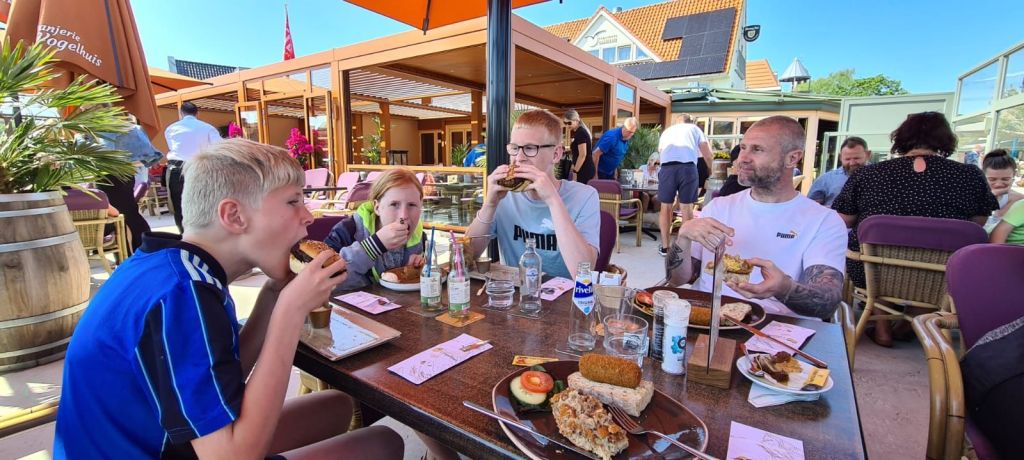 Zo zitten we langer dan we gepland hadden en hebben we een verlate lunch of een vroeg diner. De kids gaan weer terug naar Den Helder en wij pakken de fiets weer terug naar Oudeschild. Morgen weer een dag.