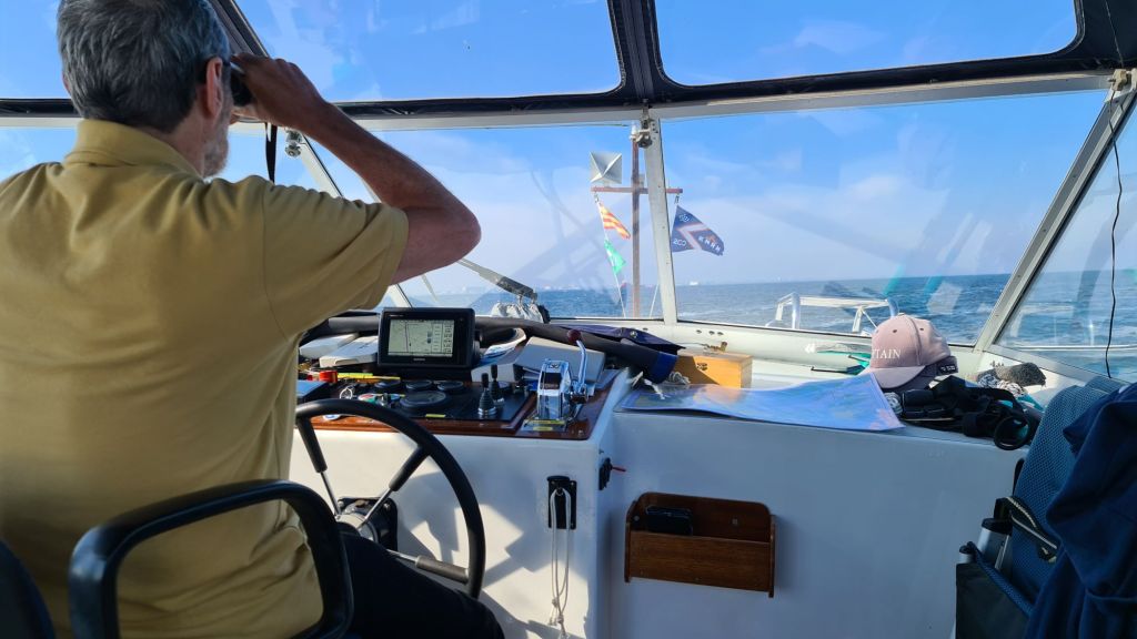 Om 7 uur zijn de Mirage en Vigor vaargereed. Het duurt ongeveer een half uur voordat je het toegangskanaal uit bent en dan begint de oversteek naar Duitsland.