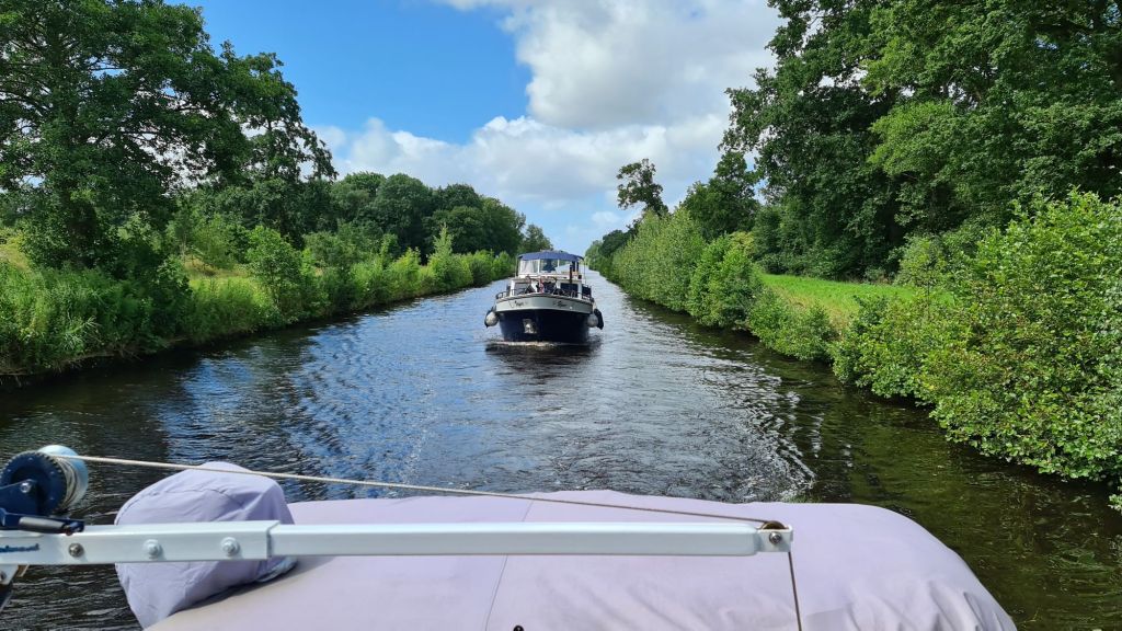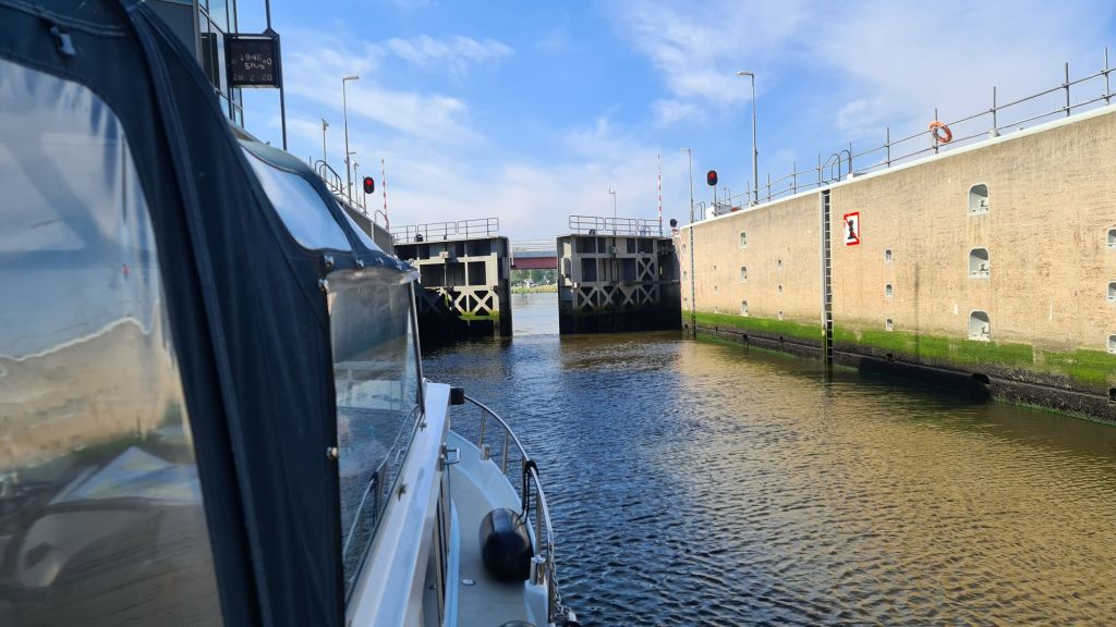 Over 40 km hebben we 5 uur gevaren. Beetje saai kanaal en soms blijven dobberen voor de sluizen vanwege de vele beroepsvaart en wachttijden bij de sluizen.