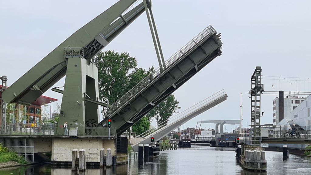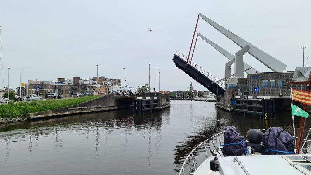 Ringersbrug, deze twee helften verschuiven apart van elkaar.Friese brug en laatste die voor ons open moest.Leeghwaterbrug. Hier konden we onderdoor.