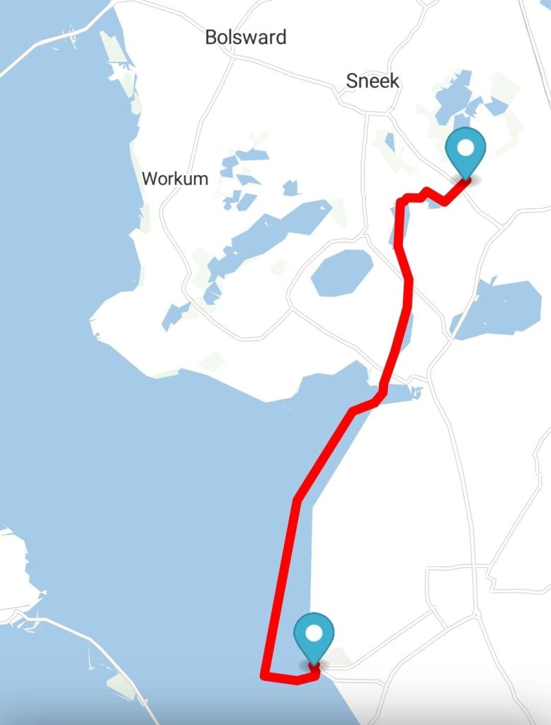 De reis gaat lekker, het is 29,7 km en we doen er 3,2 uur over.