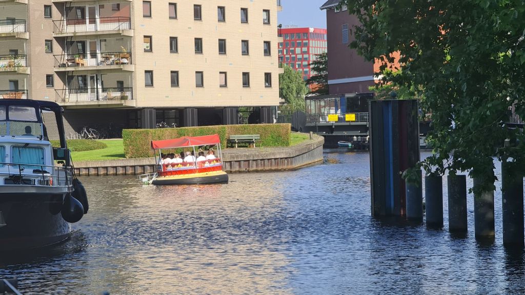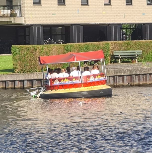 Het is goed toeven op het achterdek van de Vigor. Ook levendig Groningen. De kleine bootjes varen af en aan langs onze schepen door de kleine grachtjes. Allemaal genieten van het mooie weer, bbq en veel drank aan boord.