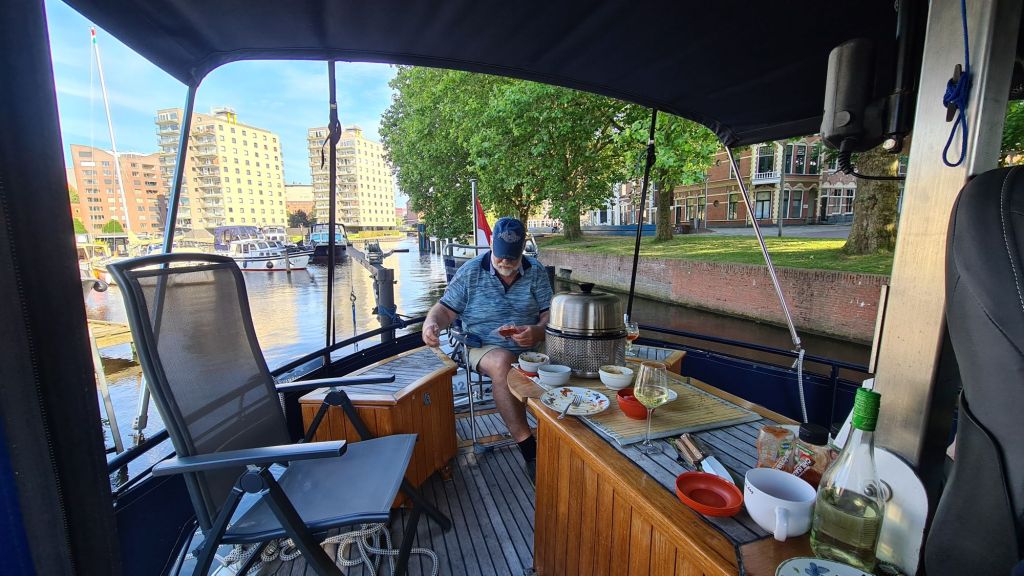 Wij genieten nog lekker een paar uurtjes aan boord. Na 20 druppels zitten we wederom lekker op de buitenbank en gaan plannen maken voor morgen. Het bevalt ons nog steeds.