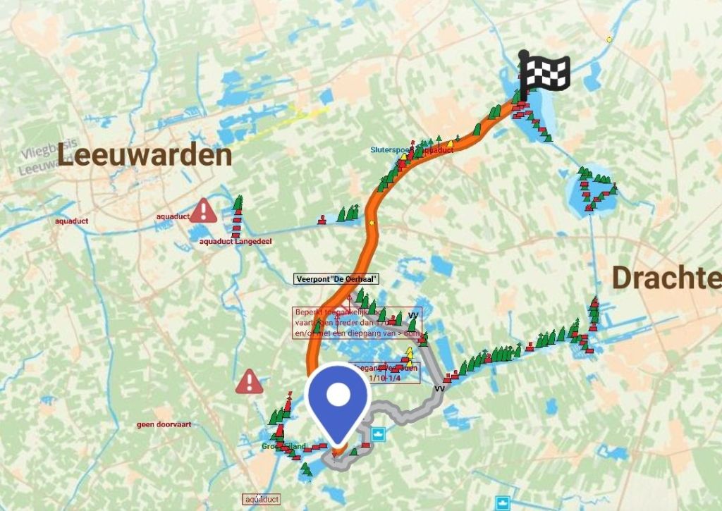 Vandaag richting Aurich. 2 sluizen en 13 bruggen over 25 km.