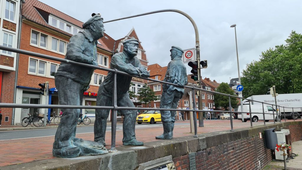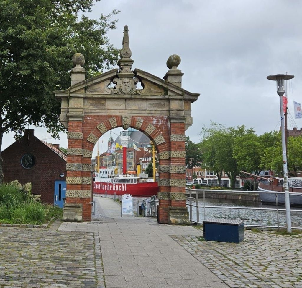 Weer mazzel, twee plekjes achter elkaar.Andere app met juiste routeDicht bij de AltstadOud poortjeBeeld van Emden vlak na de oorlog. Speciaal in Duits, Nederlands én braille.