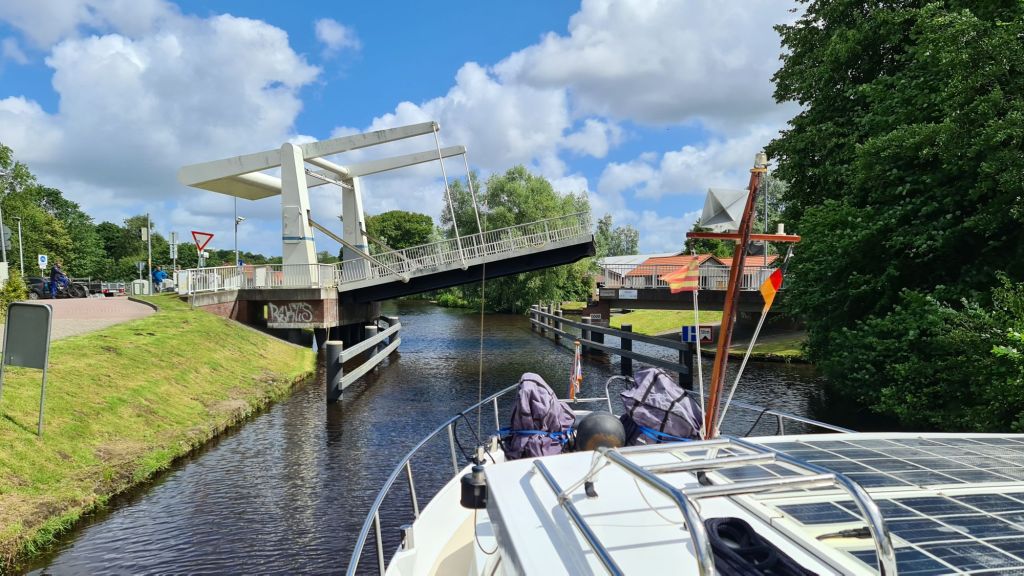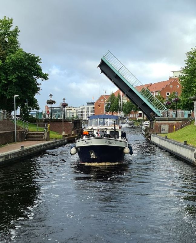 En weer een brug.Ze hebben allemaal een naam maar nu niet meer terug te halen. 🫣Eindelijk de laatste brug voor Aurich.Even een afmeerborreltjeFenders nog even op de juiste hoogte, we blijven hier weer 2 dagen.