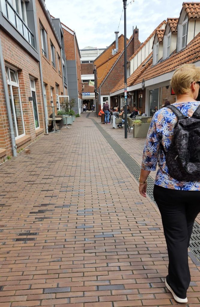 Centrum AurichGezellige drukte op de zaterdagVeel terrasjesMooie doorkijkjes.