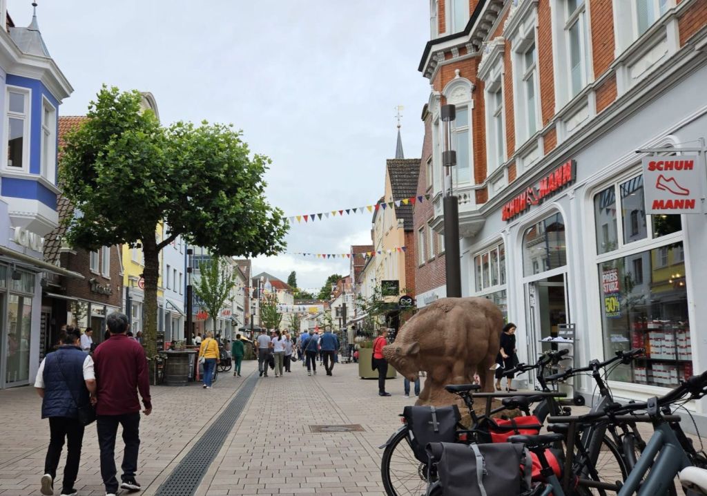 Later gaan we het centrum van Aurich in. Daar is een groot winkelcentrum en een Rewe Supermarkt. Kunnen we de voorraden weer aanvullen.
