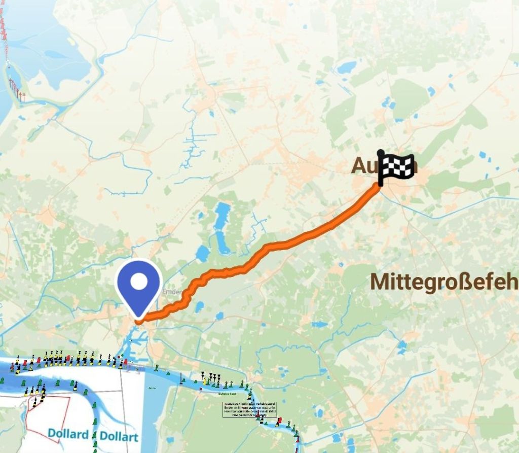 Om weer een routekaartje te hebben voor de vlog blijkt deze app niet verder buiten Nederland te gaan.Hier willen we naar toe, Emden.