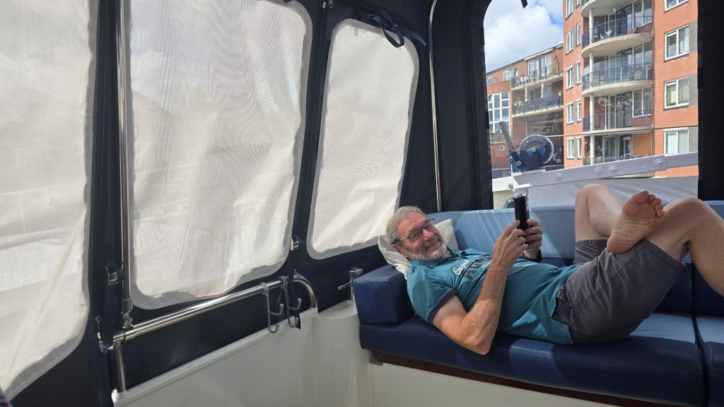 Morgen gaat een klusdag worden. Zo wie zo even met de fiets langs Dekker watersport, boodschappen doen en de spanbanden met ringen bevestigen die Arie zelf gaat aanbrengen voor de tent.. En wie weet als er tijd over is…..😜