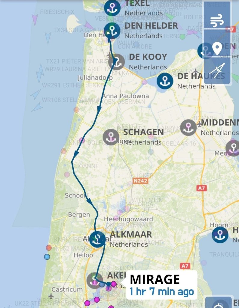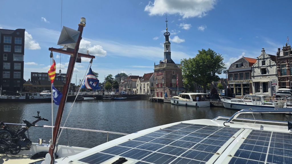We gaan via het Noord-Hollands kanaal naar Alkmaar. Wonderwel gaan alle bruggen, spoor- en vlotbruggen achter elkaar open met een minimum aan wachttijd.