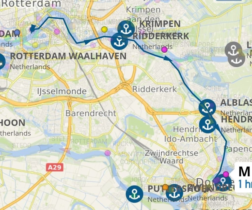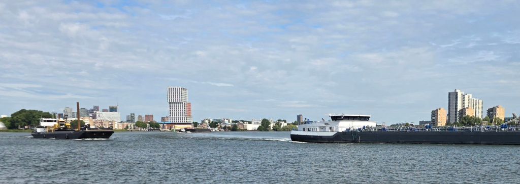 Tegen half elf zijn we uit de Veerhaven van Rotterdam vertrokken. Wat ons opvalt is dat het op het water beduidend drukker is dan op de heenweg.