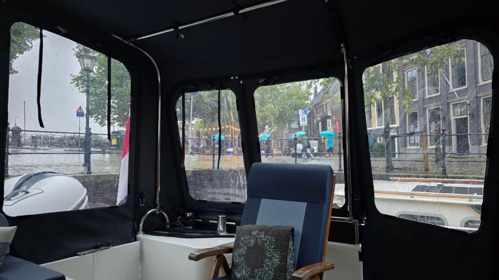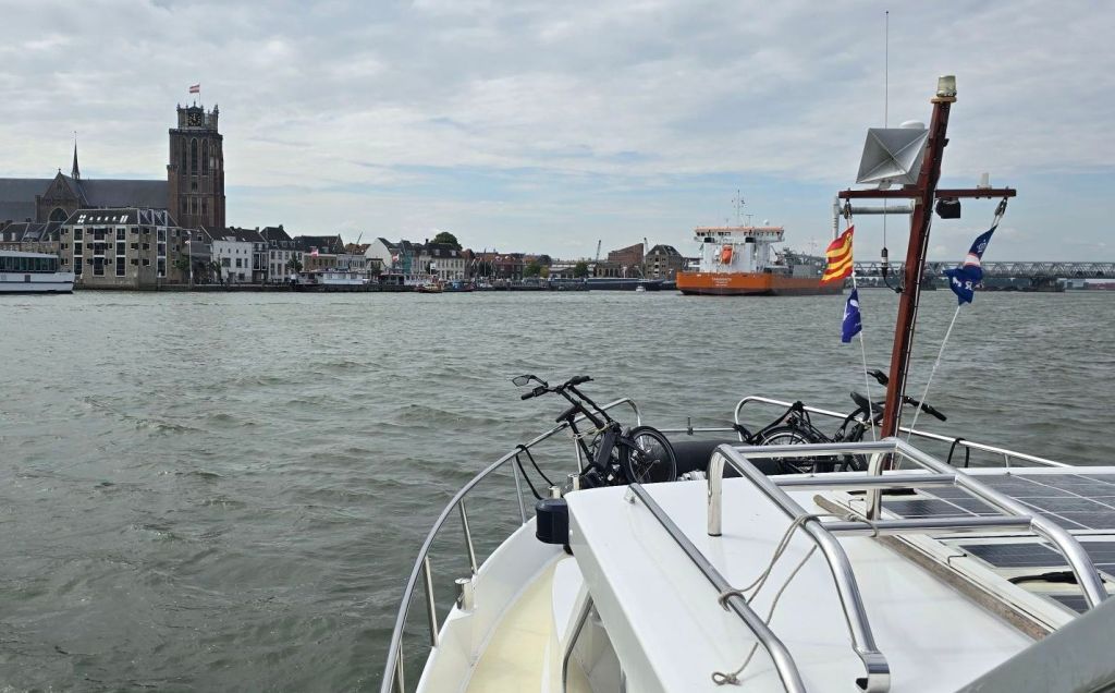 Later krijgen we nog 3 schepen naast ons met het achterschip naar de steiger zodat iedereen achter af kan stappen. Het eerste schip wat naast ons komt is een huurschip. Gelukkig is Arie nog aan boord om een botsing te voorkomen.