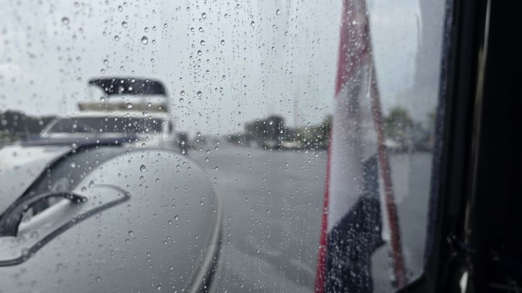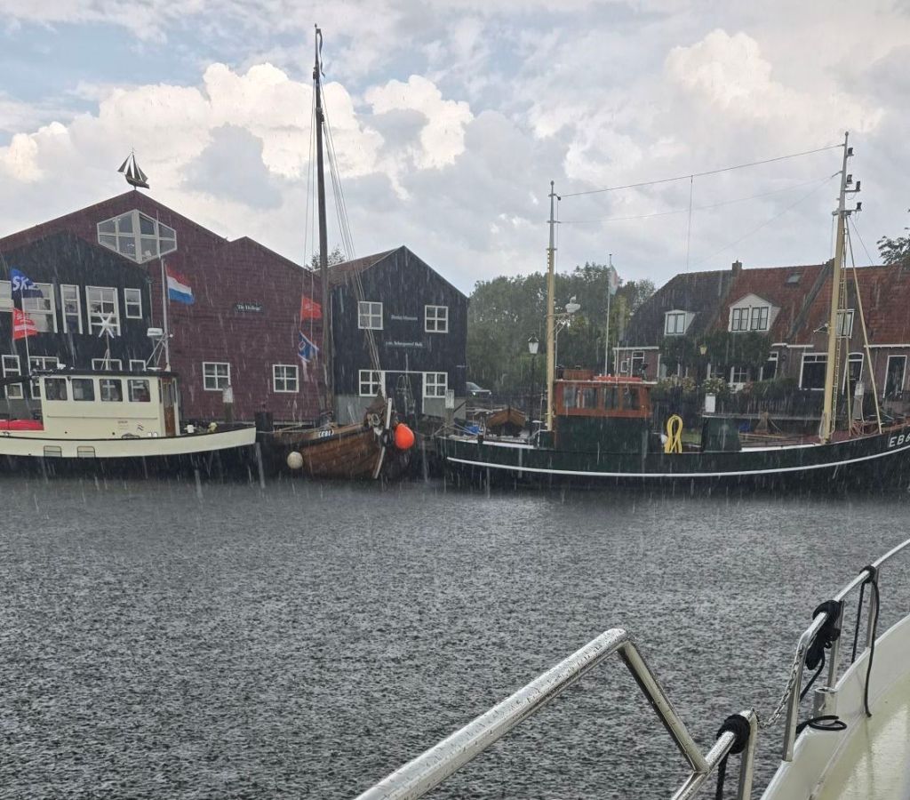 Achteraf valt het allemaal mee. Het was even heftig maar heeft ongeveer 1,5 uur geduurd. In de tussentijd ook nog een droog moment om naar de visboer te lopen.