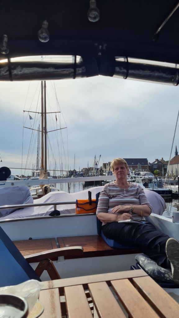 Lekker op het achterdek met een bakkie, daarna even het centrum ingelopen en ook even totaal de weg kwijt. Dat betekend alleen maar nog verder lopen. De spullen die ik wilde kopen is gelukt. Daarna nog even aan boord een broodje gegeten. Rond half twee werden we van de boot opgehaald door onze vrienden. Hebben daar heerlijk in de tuin gezeten, mee gegeten en in de avond werden we weer bij de boot afgezet.