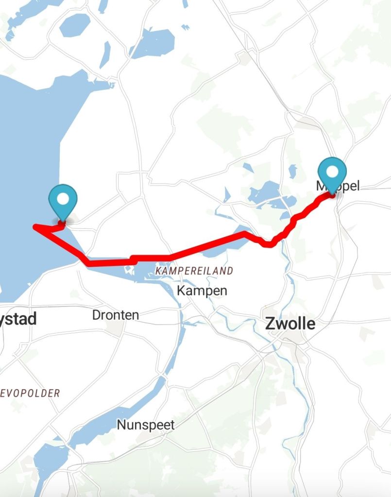 De eerste nacht in Meppel heerlijk geslapen. In plaats van gewekt worden door de vogeltjes, die waren er wel hoor, werden we nu wakker van hele andere geluiden om 7 uur in de ochtend.