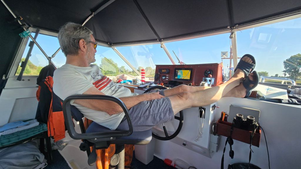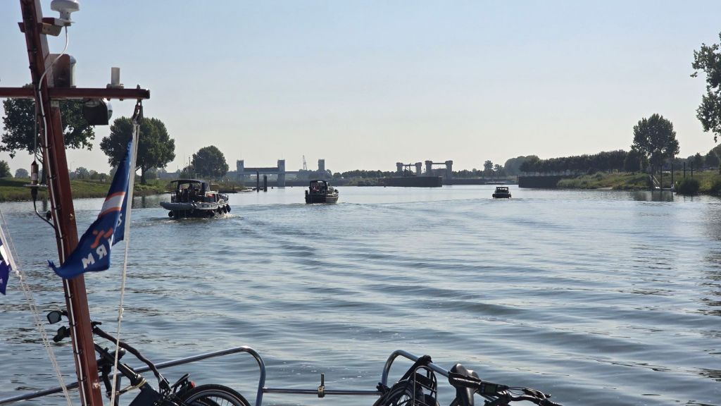 Afijn, na 2 uur wachten lagen we eindelijk in de sluis, was het hem toch gelukt ook de sluis in te komen en was het zeker niet de enige die probeerde voor te dringen. Gezellig joh. 🤨🤫