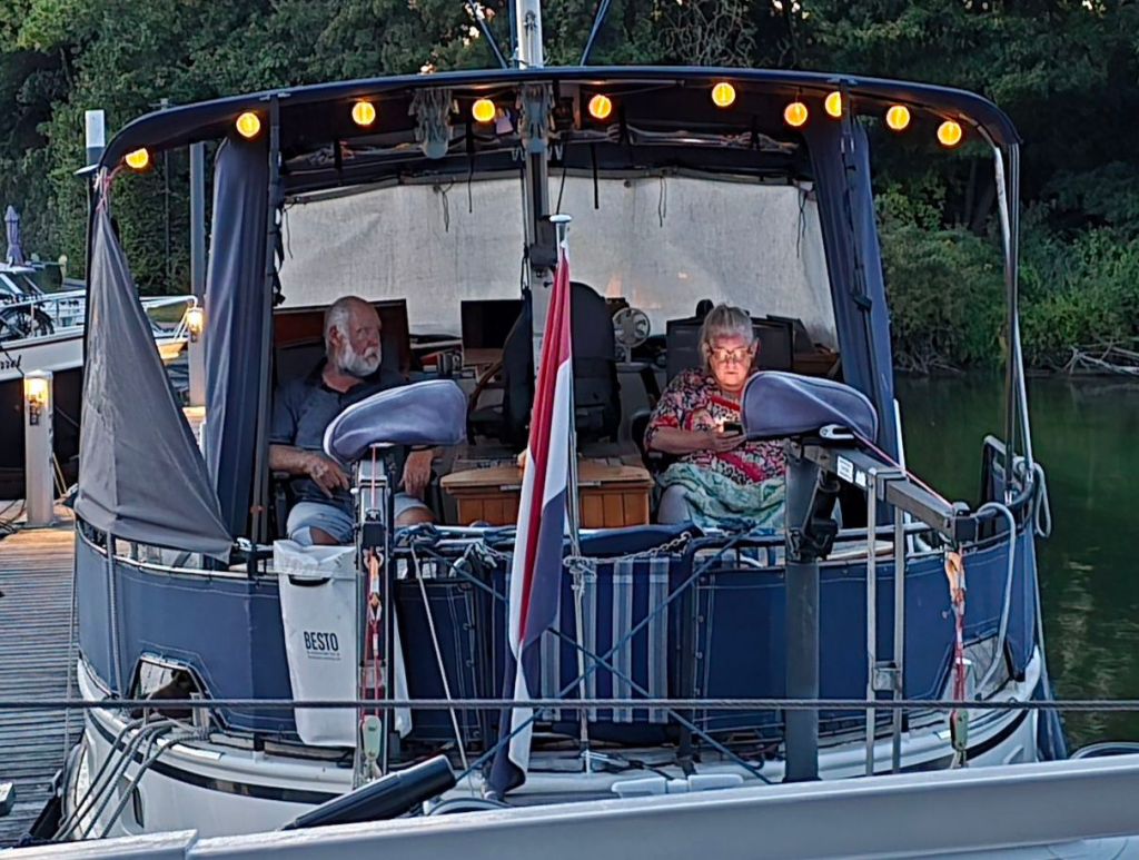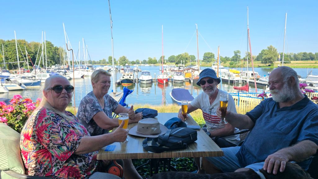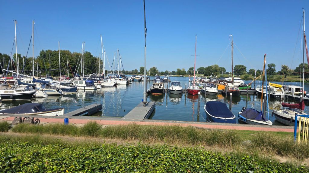 Ans en Hans komen hier al vele jaren, hadden nu ook vooruit gebeld met de havenmeester en zo liggen we op een schitterend plekje aan de buitenzijde van de haven met uitzicht over de plas.