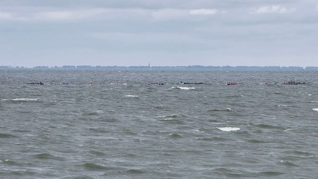 De race begon om 12 uur, dan vanuit de haven van Urk, stuurboord uit roeien tot de eerste windmolen, daaromheen en weer terug de haven in. Totaal 15,3 km, totale gekte met dit weer. Half uurtje later besluiten we een wandelingetje te gaan maken. Eerst richting de visafslag maar daar was al niets meer te zien. Dus terug omlopen richting de vuurtoren. Zo lopen we ook langs de Tourist info. Toch maar eens informeren naar die Ginkiesroute. Verteld de dame dat de gids al klaar staat om te vertrekken en besluiten we om aan te sluiten.