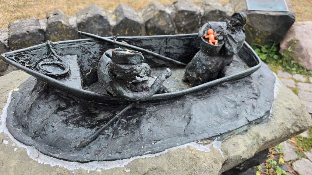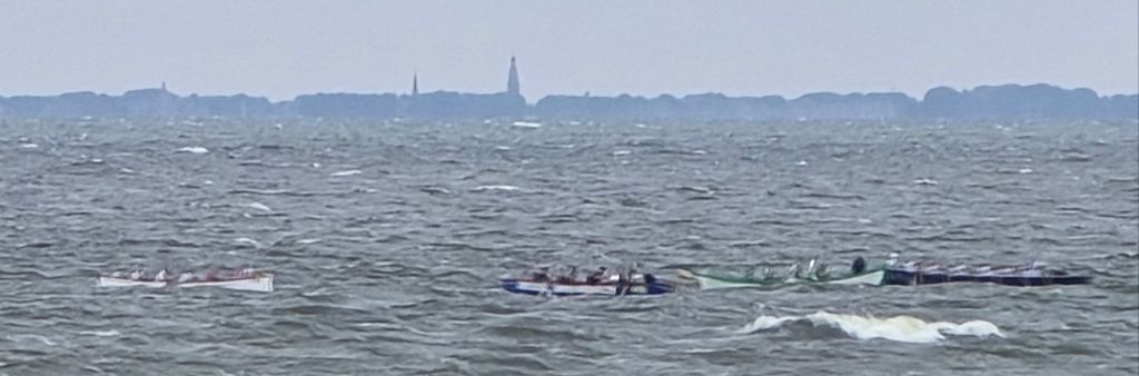 Zo lopen we langzaam verder door straatjes, achter huisjes, tuintjes en ginkies richting het monument voor de vissers die op zee gebleven zijn. Zo zien we dan ook de sloepenrace.