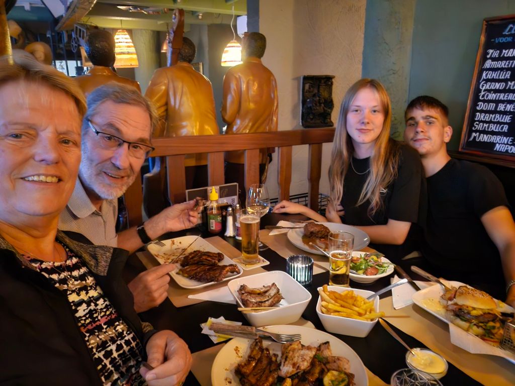 Na zo’n lange dag varen geen zin om te koken en de jongelui vinden uit eten gaan ook niet erg.