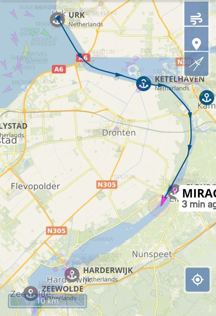 Plan was, met de nog steeds zeer harde wind, om via Lelystad naar Amsterdam te gaan. Wind op de kop. Dat hebben we laten varen en zijn richting Ketelmeer gevaren. Met dit weer wil je niet op het IJsselmeer zijn. We hebben de golven het eerste stuk dwars, vaart wat minder lekker maar als we de Ketelbrug voorbij zijn genieten we van het smallere en rustiger water.