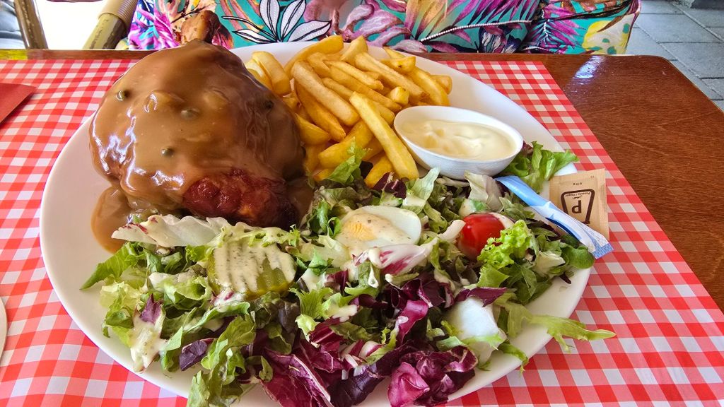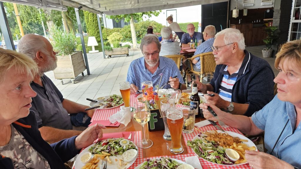 In de namiddag met een stralend zonnetje op het terras gaan zitten en uiteindelijk daar wederom gegeten.