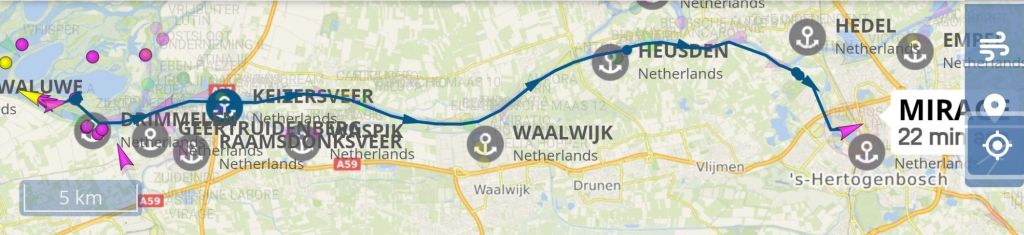 Omdat het nog vroeg is besluiten we door te varen. We weten dat vrienden van ons met de boot in Den Bosch liggen. Bellen de haven of er nog plek is, ja dus.