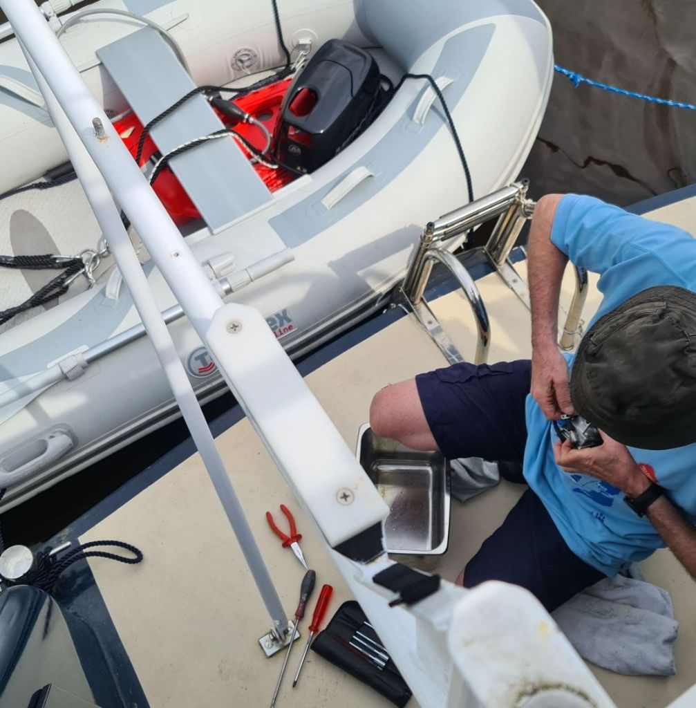 Morgen gaan we naar de haven, dan is de vakantie weer over. Gaat de buitenboordmotor ook mee naar huis en zien of we er mogelijk nog garantie op hebben.