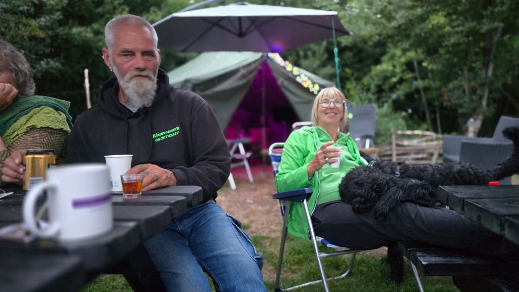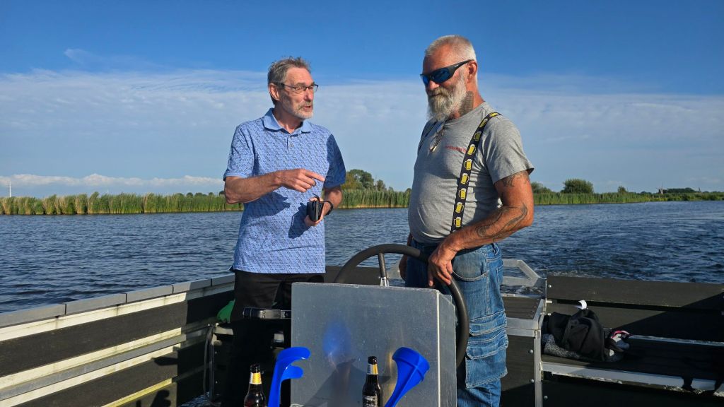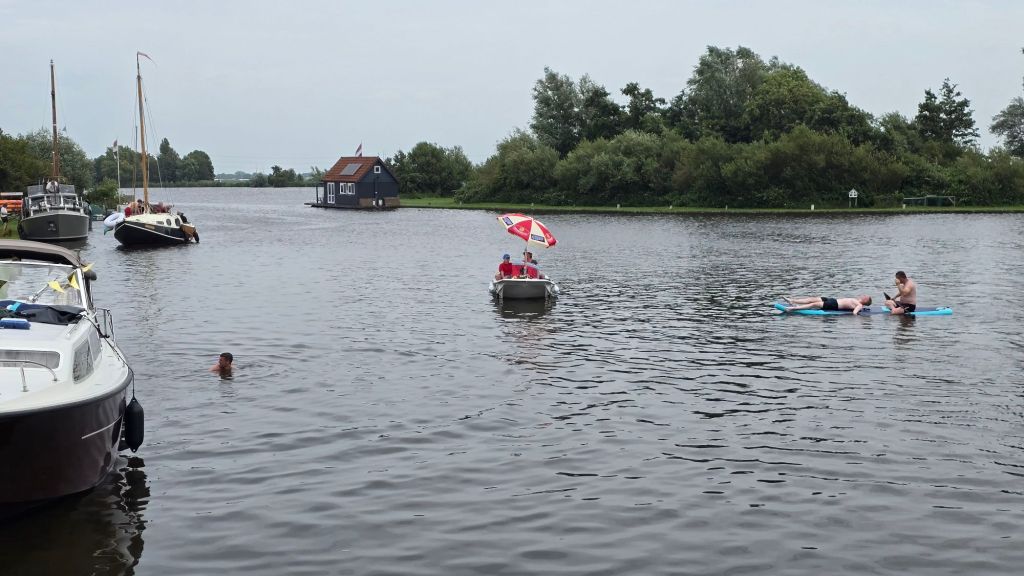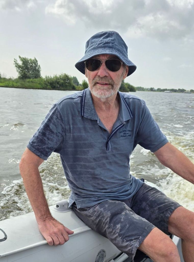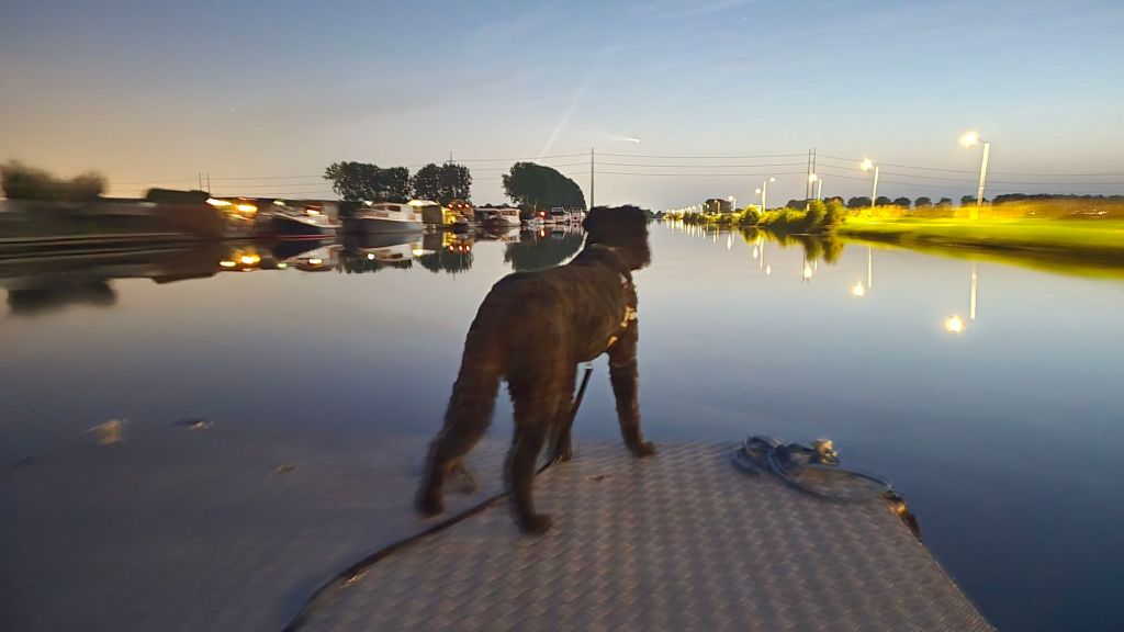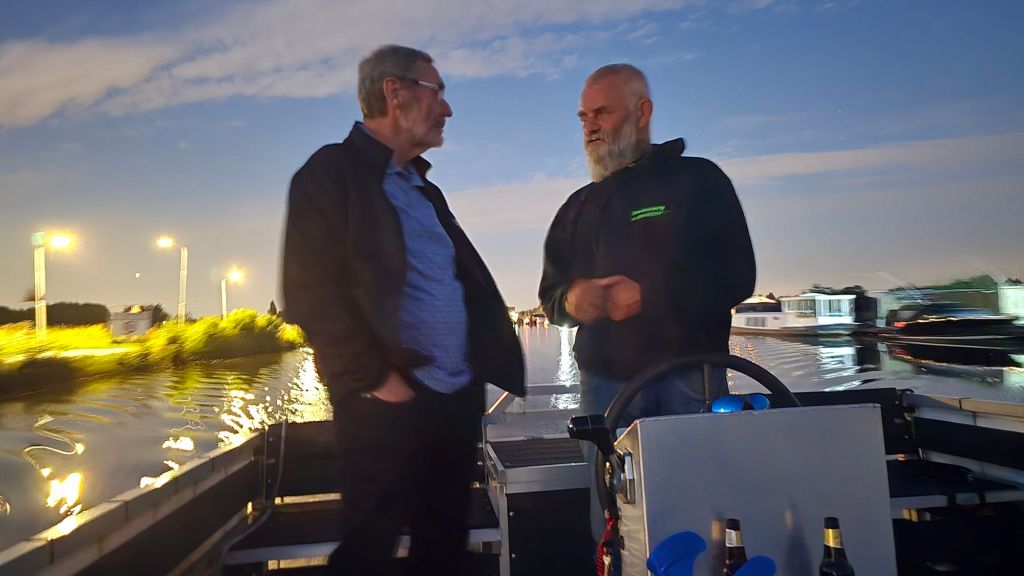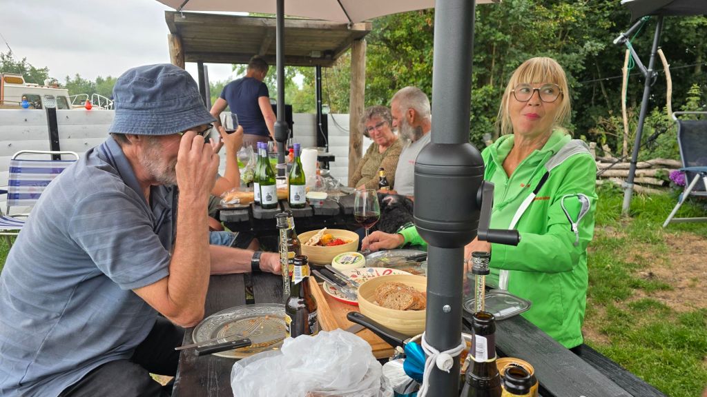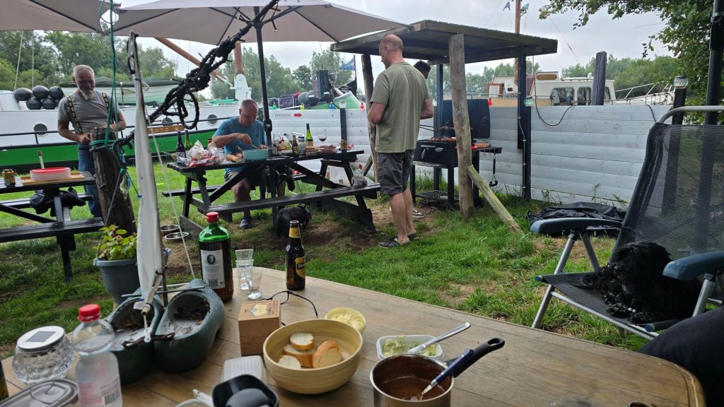 Uitzicht op de ingang van de haven.Rondje met de bijboot over de Kagerplassen en dan dit tafereeltje zien.Gilia, tijdens uitleg over het maken van mooie (portret) foto’s. Ze heeft net een nieuwe bril.Met de havenboot op stap om samen met Edwin en Gilia, het beheerdersechtpaar, uit eten te gaan.Om half 11 in de avond weer terug, de honden waren ook mee.Anders dan de foto’s laten zien, was het pikdonker.Nog een rondje over de kagerplassen. Harde wind en knobbelig water, dus ook drijfnat.Zelfs hier ook een ijsboot, lekker.Met meerdere vaste gasten een bbq bij de haventent.Overleg in de tent met genoeg bier.2 pickniktafels vol gezelligheid.ValentinoDonTippie TippelsEdwin, Gilia en een beker thee.In de vroege ochtend van uit onze slaaphut gezienHelaas nog steeds de krukken nodig.Zondagavond, de vuilniszakken ophalen van beide eilanden.Wegbrengen naar de walDe molen achter het eiland.Elke dag één of twee keer met de honden wandelen, rondje is 1 kilometer.Weer vaarklaar om te vertrekken.