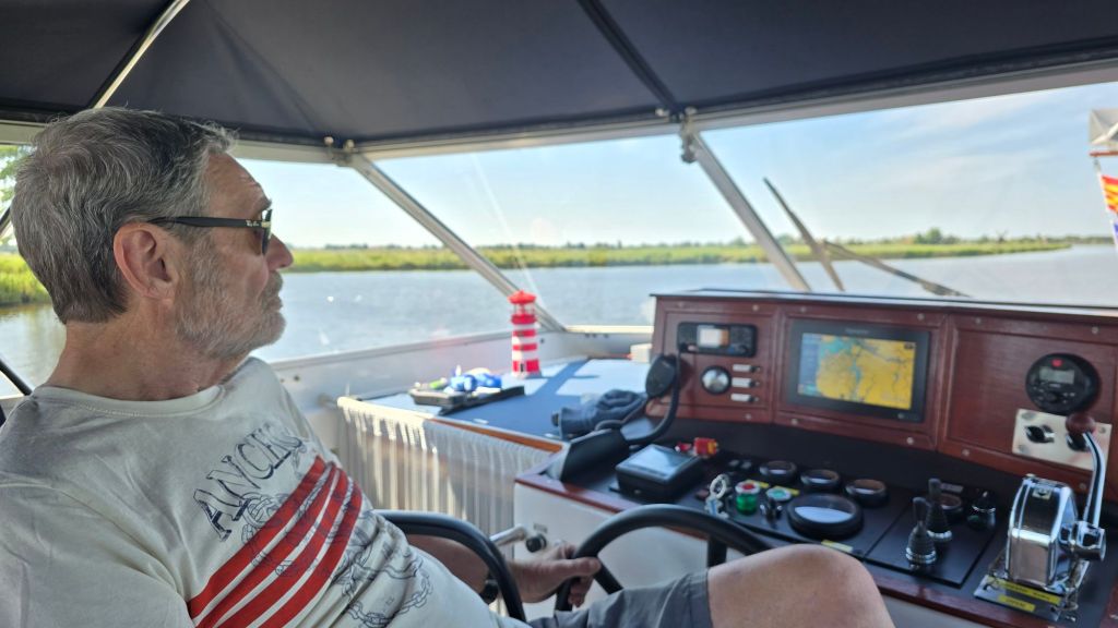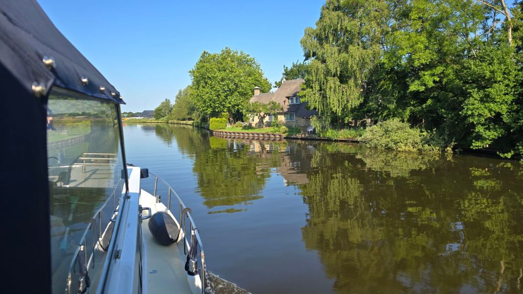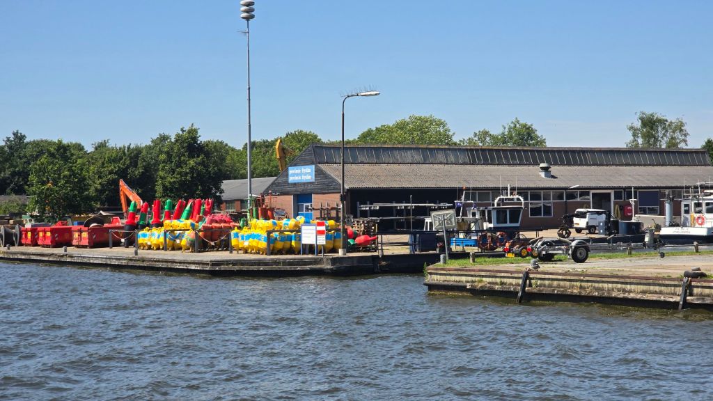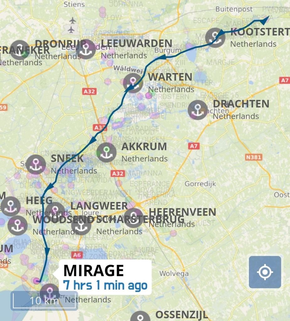 De afslag naar onze ligplaats in Sneek varen we nu snel voorbij. Wat ons ook opvalt is dat er weinig pleziervaart op het water is.