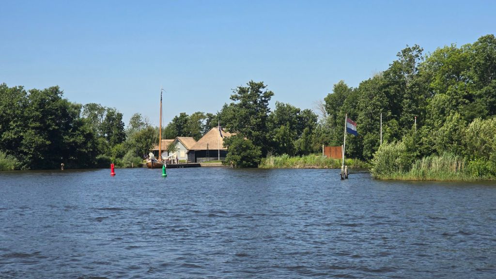 We zijn nu al een behoorlijk eind opgeschoten en na Spannenburg is er nog een klein eilandje waar je kunt afmeren. Er liggen al wat schepen, waar nog wat plek is, daar is ook volop de zon en teveel bomen die de wind tegenhouden. Normaal zoeken we dat op maar nu willen we graag een briesje voelen.