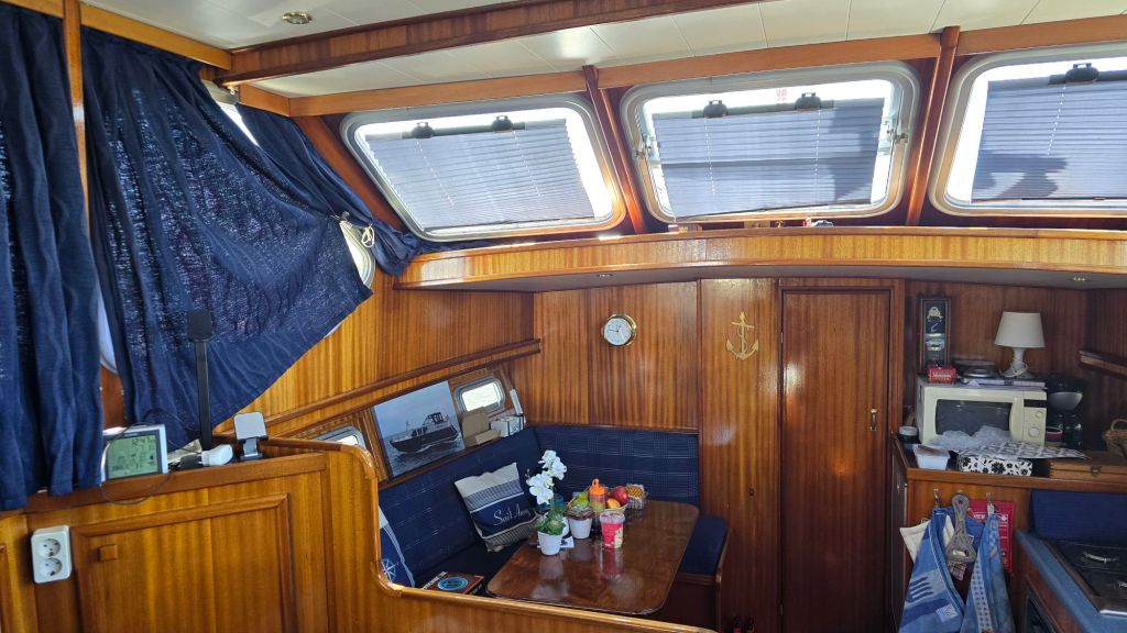 Op advies van de zeilmaker hebben we boven het dashboard geen ramen meer. Dan is er ook minder licht. Maar nu merken we ook de voordelen. Het materiaal wat er voor de ramen gebruikt wordt, is niet meer van dezelfde kwaliteit als 20 jaar terug. Uiteindelijk is het zoals het nu is dus beter.