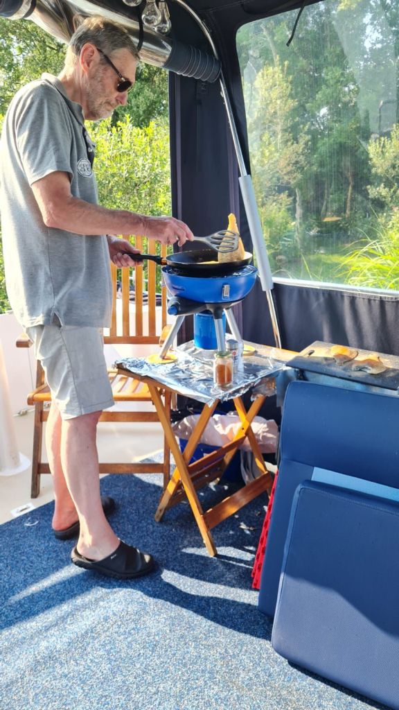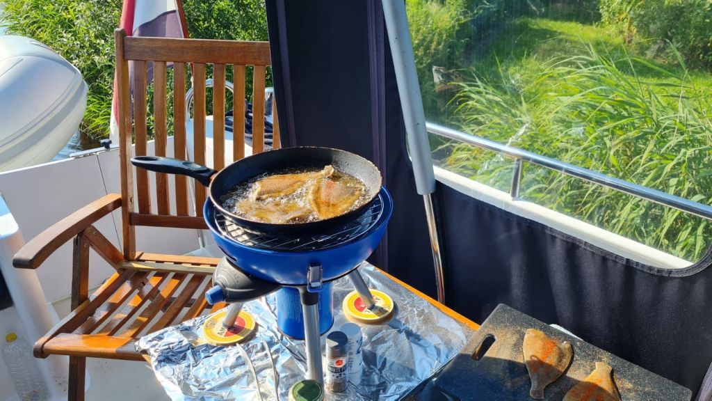 Zo komt de dag wel om. We hadden van thuis nog vis uit de vriezer meegenomen en kunnen we nu ook de nieuwe partygrill uitproberen. De vorige was zeker niet kapot gegaan van het stilliggen.