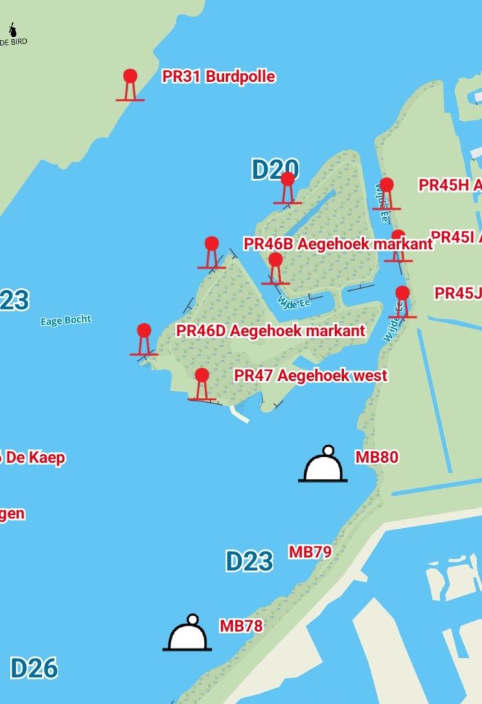 We liggen vrij veel bij dit eilandje. Er is aan alle kanten en ook binnenin veel afmeerplekken, zodat je bij elke weersomstandigheid altijd prima ligt. Nu zijn we afgemeerd bij PR 47 west.