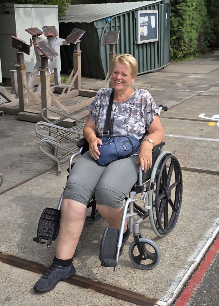Strompelend, hangend aan Arie zijn we naar het havenkantoor gelopen. Vragen om een taxi hoefde niet, een van de bestuursleden bracht ons heen en bleken ze ook nog een rolstoel te hebben, waarmee ik naar de auto gebracht werd.