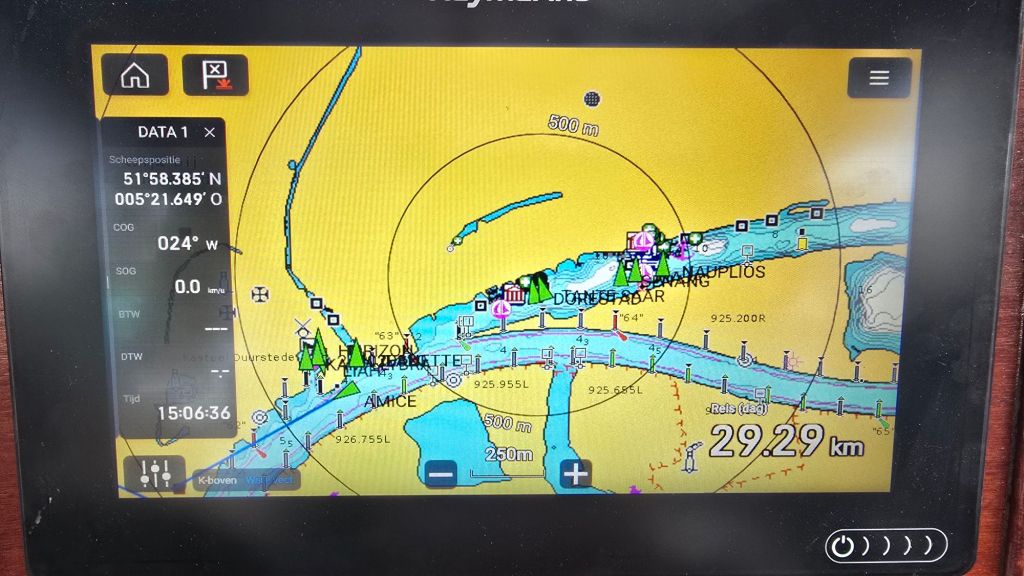 Om 9 uur vertrek, om 15.00 uur afgemeerd in de Jachthaven. 6 uur over kleine 30 km wat normaal in 3 uur kan. 🙄