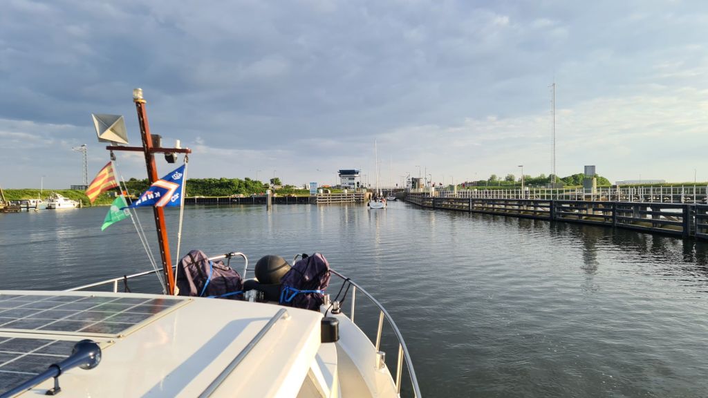 Wanneer je van zoet water naar zout water vaart of omgekeerd, is er een ezelsbruggetje om je aan te houden. “Van zoet naar zout gaat altijd fout, van zout naar zoet gaat altijd goed”. Dat wil zeggen dat wanneer je zoals wij vandaag van zoet naar zout varen eerst achter vast moeten maken. Doe je dat niet dan gaat geheid het achterschip weg van de kant. Zout- en zoet water mengen niet maar worden twee lagen boven elkaar waardoor je een iets andere onderstroom krijgt. Het gebeurde dit keer helaas ook bij een zeilboot die achter ons afmeerde.