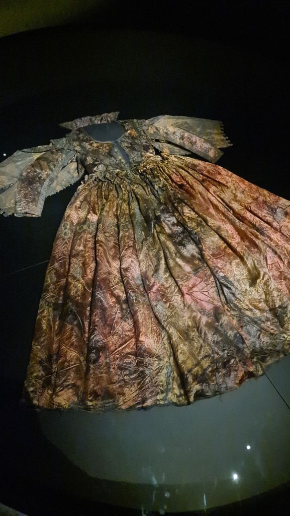 De jurk heeft onlangs veel publiciteit gehad. Het is ook prachtig. De jurk is fantastisch geconserveerd. De kast waar het in ligt heeft 25 mil gekost om de conservatie in stand te houden.